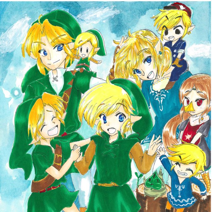 ゼルダ駅伝の優勝サムネ担当させていただきました(*´︶`*)時オカのGSRは大人リンクと子供リンクも出るので両方、風タクバグ制限は賢者の2人もいっぱい活躍するカテゴリなので3人といった感じで走るカテゴリ全部のリンクのお疲れ様写し絵をイメージさせて頂きました(*´︶`*)