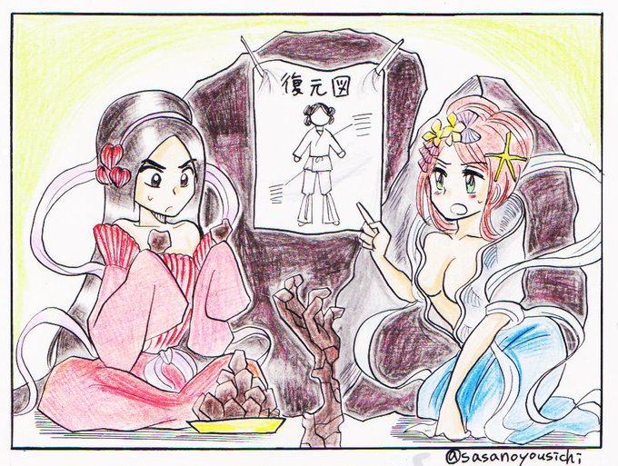 『古事記』より、殺された大国主神を復活させるウムギヒメとキサガイヒメ