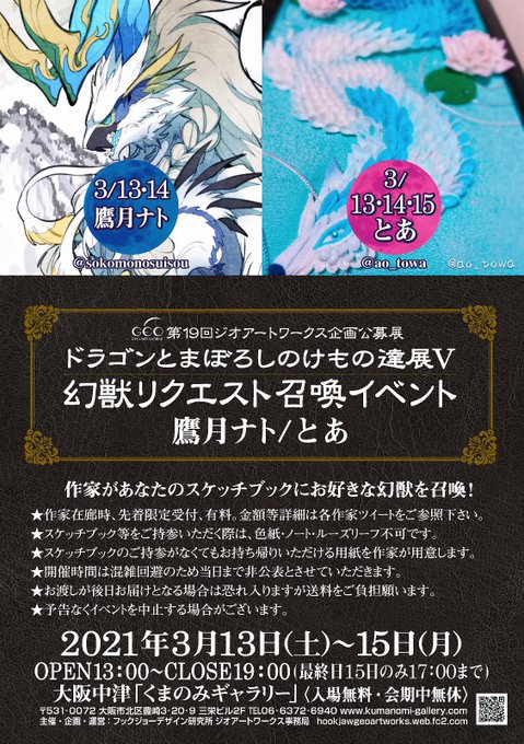 🐉3/13(土)〜15(月)13:00〜19:00(最終日15日(月)は17:00まで)