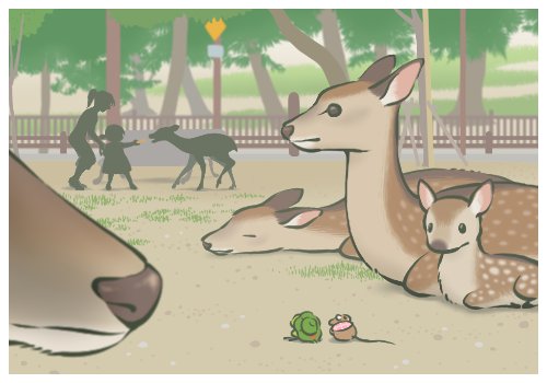 ・奈良県 奈良公園 奈良の鹿-鹿せんべいをあげる母娘(鼠さんと一緒)