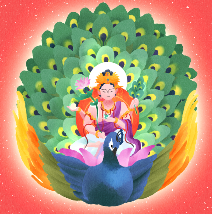 仔細看經文,孔雀和明王是兩個角色,不是一個人。應該有其他表現方法🤔