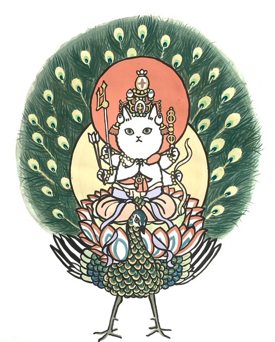#drawing #どろーいんぐ #令和猫孔雀明王 #新型コロナウイルス感染症退散撲滅 #他者におもいやり #ソーシャルディスタンス #医療従事者に予算を #災害消除