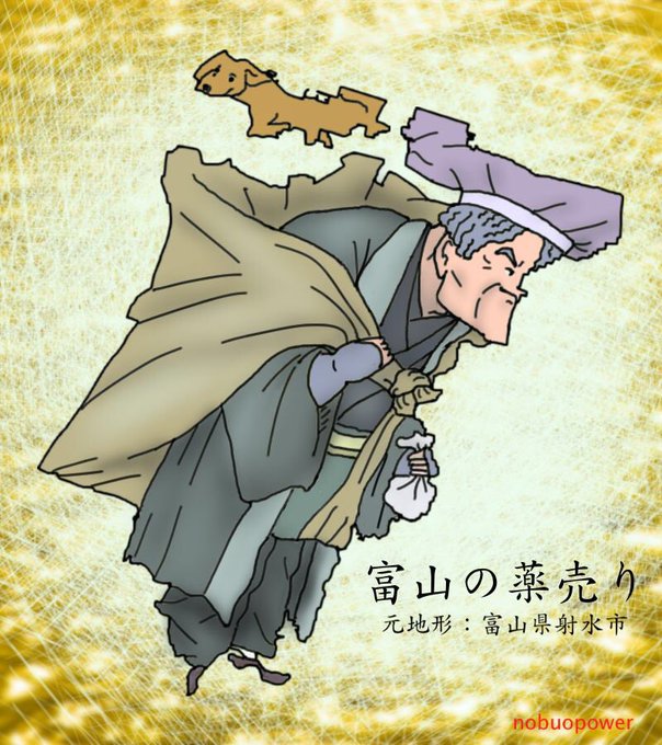 富山県射水市のはめ絵。 射水市は薬売りに。犬も振り向く渋さ(^ ^)。 #射水市 #富山県 #薬売り