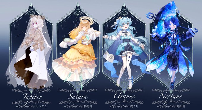 それぞれのデザイン、立ち絵をシャッフルして描き合っております!私は④のイラストを担当しておりますよ❤