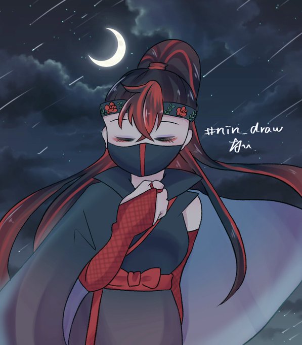 忍ドロとして描いたけど ミュのキャラクターを受け入れてもらえるのか今更不安になってダクなし😂 再演決定にちなんで描いた鵺様 ねんねのころいち!!