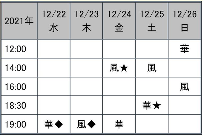 📆12月22日(水)〜26日(日) 全8公演