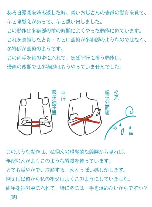 有一天在重温漫画的时候,忽然发现蓝叔的这张封面姿势很眼熟,然后就想起来,是他和小白的常用姿势很像。当我意识到这一点的时候……原来并不是蓝染像日番谷,而是日番谷像蓝染啊……如果这是有意画出来的细节设定,不是无心之举,那这就厉害了。 #BLEACH