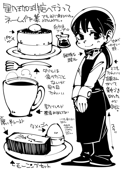 星乃珈琲店のパンケーキとわしの絵をちゃっかり置いときます。