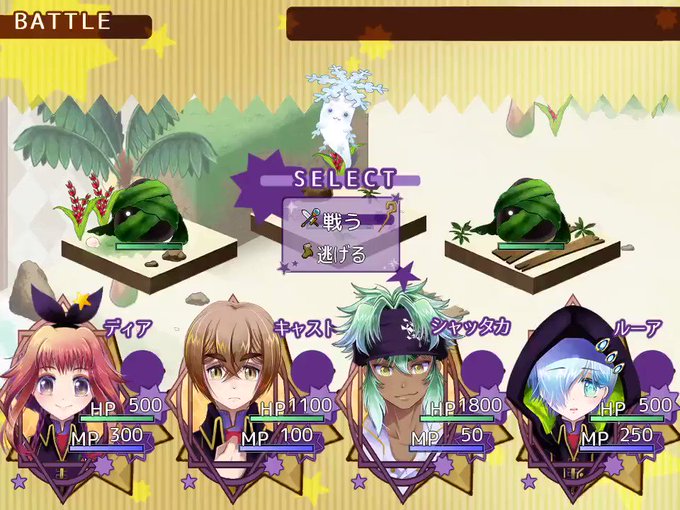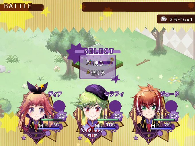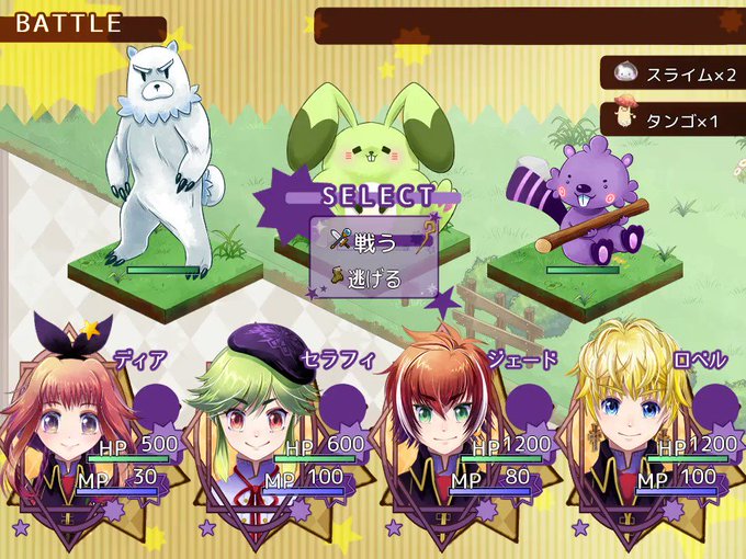現在コマンド選択中のちびキャラが表示されるようになりました。2コマだけですがアニメします。