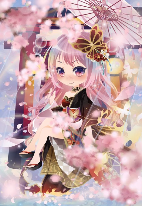 背景アイテム「桜散る神社」の再現に成功!! #セルフィコーデ #ポケットランド #セルフィ #selfyHD #selfy4K #セルフィコーデレシピ