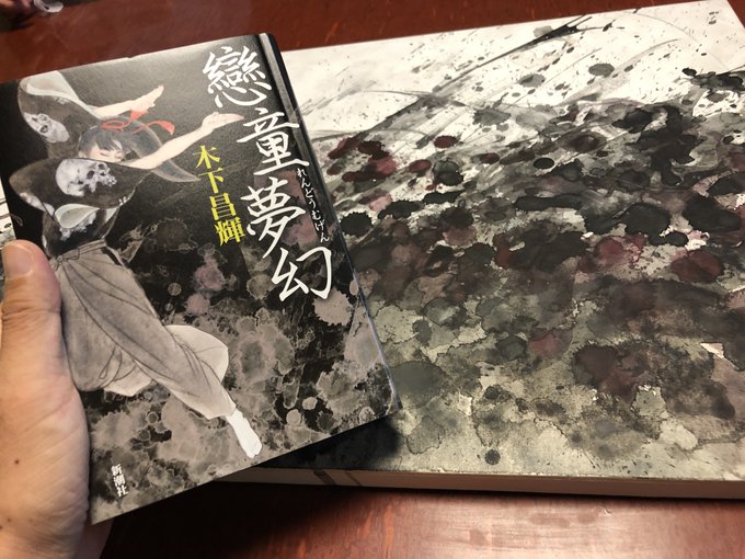 小説の装画の原画ってどんなやろって思ったりしません? この前新潮社行った時に『戀童夢幻』の原画を見せてもらいました。素晴らしいですね。木板に和紙を貼っているのかな。2枚目みれば人物と背景の絵が別とわかります。3枚目見ると背景は白黒反転させているんですね。
