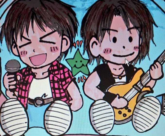 おめでとうございます🥳🎂🎸遅刻ですが描きました! 還暦なので赤いギターで(というリクエストをいただいた)
