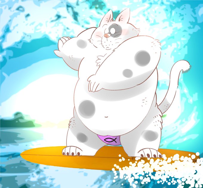 こんにちは!猫デス。ここは冬でも暖かいので海で泳げますが・・・猫は水に濡れるがキライです。猫のサーファーはとても珍しいと思います。