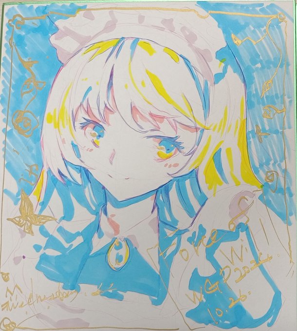 色紙は現地で描きました(サイン2時間くらいしたあとなのでヘロヘロしてるけど)最近激務で昨日ねちゃって、でも何かプレゼント用意したくて、会場の隅で描いてたら場所用意してくださいました。ありがとうこざいます🩵