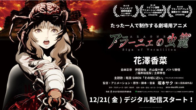 「アラーニェの虫籠」8/18(土)初日舞台挨拶(登壇者・花澤香菜、白本彩奈、福井裕佳梨、伊藤陽佑、バトリ勝悟、坂本サク監督※予定)、チケットぴあでの販売は本日18時までです。一回目の舞台挨拶は残り僅かとなっています。この機会をお見逃しなく!!