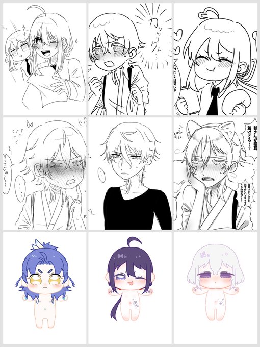 粟田口だよ全員集合!させたいィィ……。これは2016年の赤ブーさんの粟田口プチ告知絵を描かせていただいた時のやつ……(にその後実装された信濃を無理矢理足したもの)