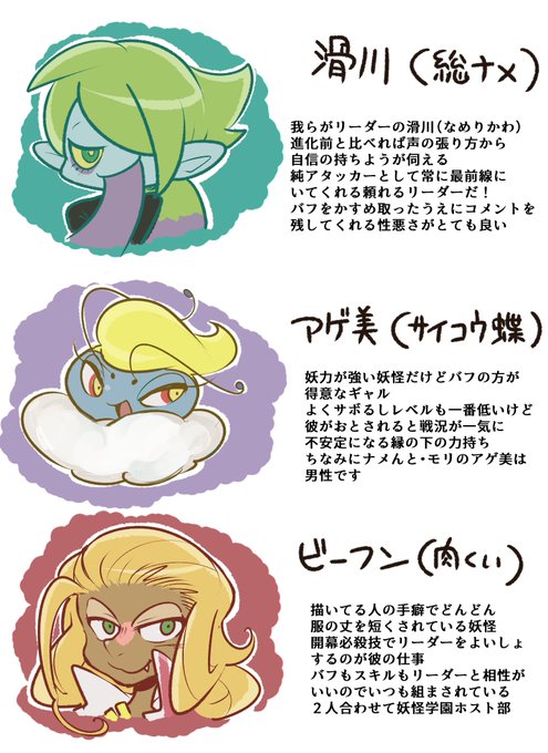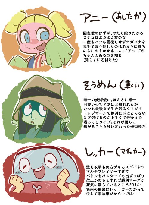 全部過去絵ですいまメンだけど、総ナメをリーダーとしたチーム『ナメんと・モリ』で常に出動しています!しかし微妙に集まりづらいメンバーでもある(ゲームによっては登場しない)