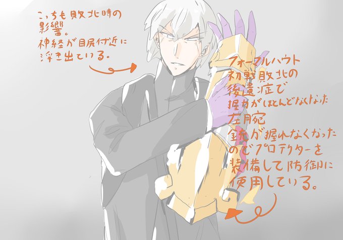 2020Ⅱの6周年で久しぶりに描いたので2期の身体ボロボロホヅツ君のラクガキとちょっとした設定。籠手がついて原作のサム男の姿に近くなってる。 #自分のセブドラ