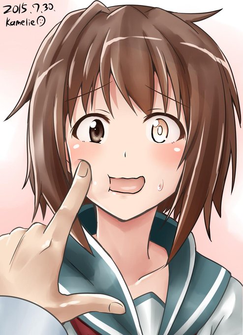 古鷹のほっぺをムニる