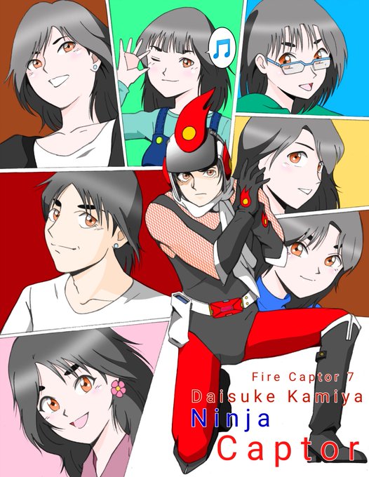 @gigamaxorcaptai 前に全員描いたことがあります。元は三年前に華さんfigma改造で花忍を作ったのがきっかけでした。その年の最終章でサメさんチーム登場で閃きました。さらに華さんの前任が桃ちゃんということが新たに追加されました。