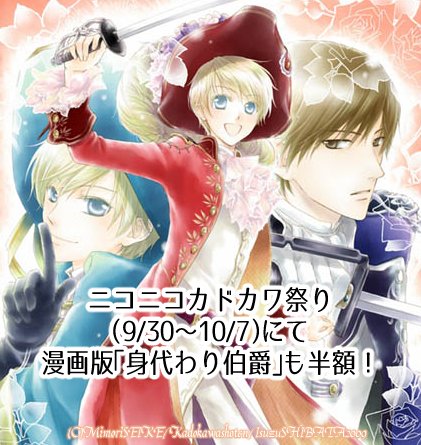 「ニコカド祭り」で漫画版『身代わり伯爵』も半額になってます。宜しくお願いします(╹◡╹)