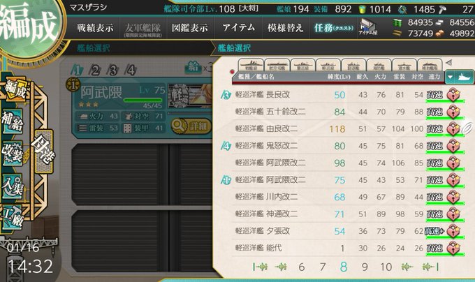 複数運用筆頭候補でもある阿武隈を再び改二まで育成するのは改装設計図コストの面でも大変でした💦E3レベリングをやる時間的余裕があればもう少し早かったんだけどなぁ。