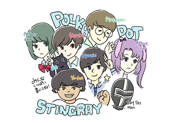 目の色がそれぞれのメンバーカラーになってるの芸が細かいな〜さすが雫さんやな〜と思ってたら、ミツヤスは目がないから緑にできてなくて草