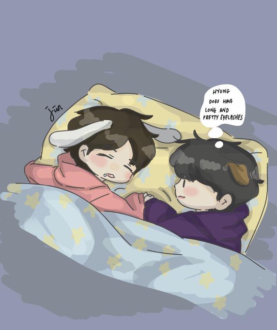 Just seungmo admiring his hyung long and pretty eyelashes while the mischievous bunny is sleeping ,he sure look calm and pretty