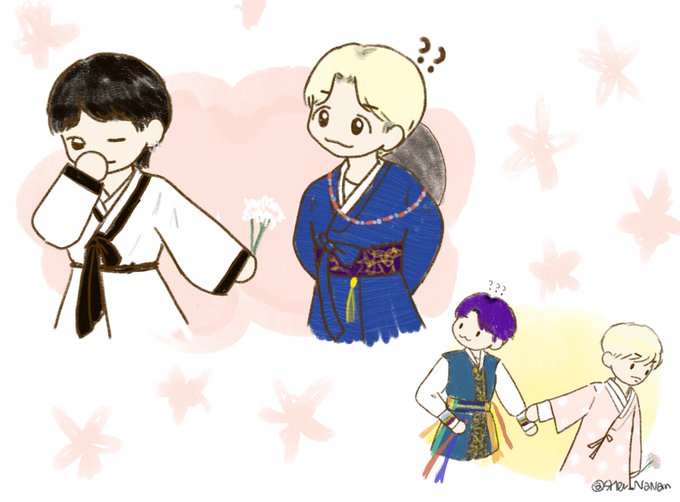 🐱엣헴, 오다 주웠다. 🐿??? 🐰저거 형꺼 아니예여…? 🐥그냥 가자… #슈홉 #yoonseok #sopefanart