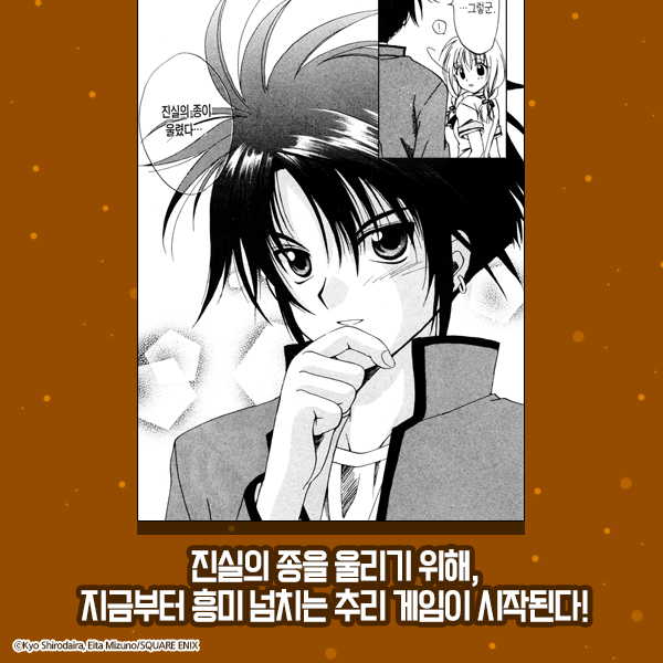 탐정학원 Q, 긴다이치 시리즈를 그린 콤비가 내놓은 추리물입니다. 애들 연령대가 다양하죠. 큐와 미나미 메구미는 중학생, 가장 나이많은 토야마 긴타로가 고등학생, 나루사와 카즈마가 소학생, 아마쿠사 류는 학교를 안 다닙니다. 애니보다 원작 스토리가 더 좋아요