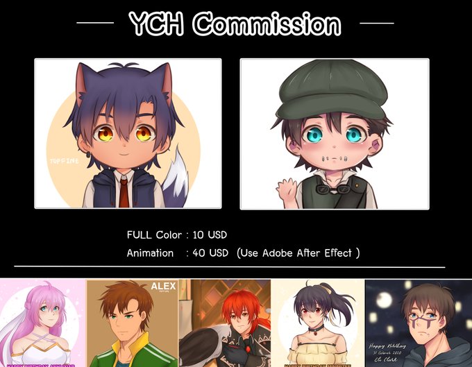 I open drawing commissions normal scale, chibi scale, YCH, and YCH Animation.