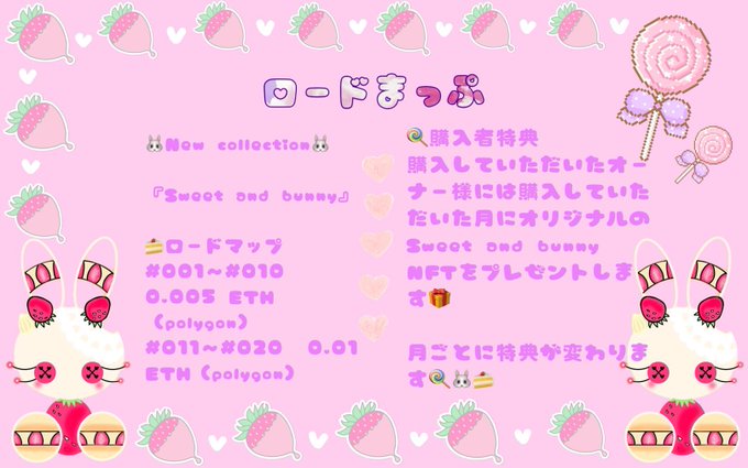 購入していただいたホルダー様には購入していただいた月にオリジナルのSweet and bunny NFTをプレゼントします🎁