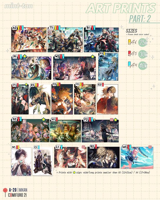 [3/3] 🫀 jjk, genshin! and various fandoms art prints! (most are old stock, pls help me clear them out hehe)