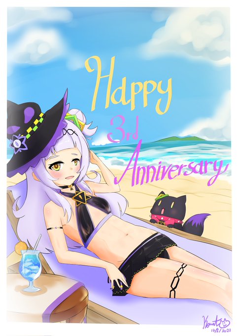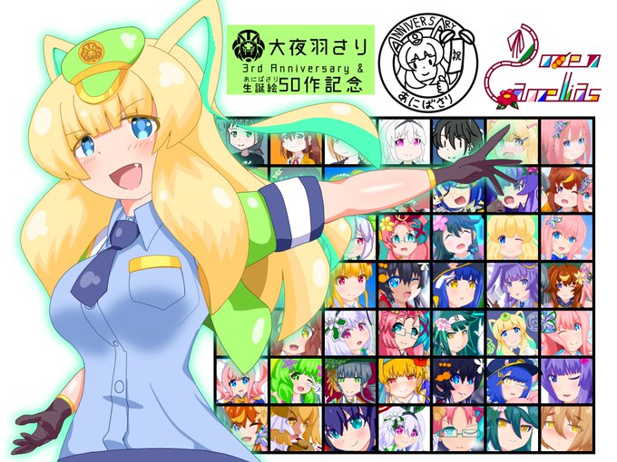 大急ぎで描いた3周年記念絵‼️そして正午に春的円盤発売情報があったので、文字を書き足したらゴチャゴチャに~😂