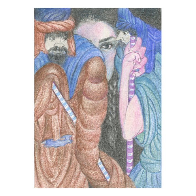 Lots 444-446 'The Dance in the Rain', 'Sunny Conversations' & 'Face to Face' by Bahar Sabzavari ✨(Graphite on Paper & Watercolour and Pencil on Paper)