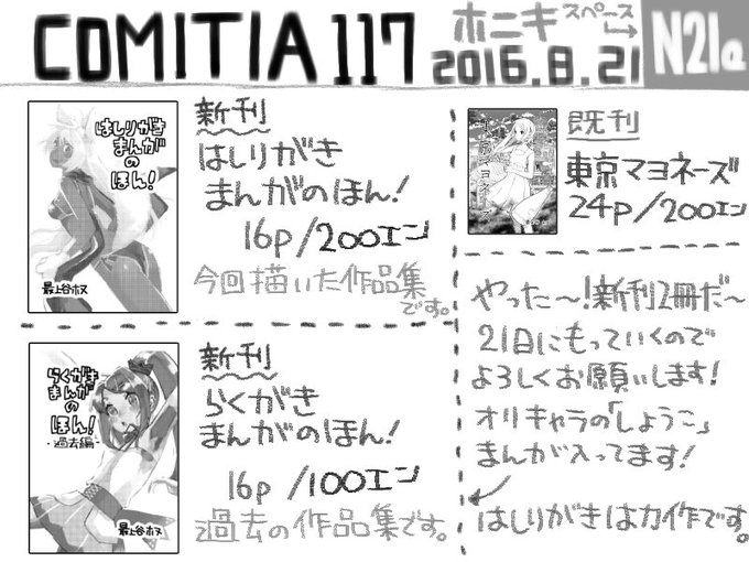 8月21日のCOMITIA117【スペース:き05b】参加いたします!
