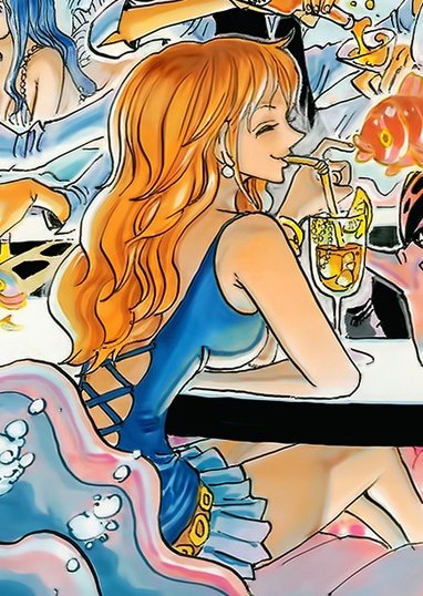 nami being a lil bit lovey dovey to luffy in official colorspreads