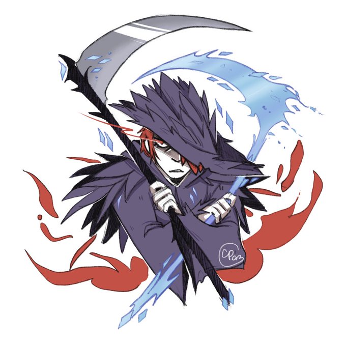 Needed to warm up and decides to draw Bozo Jr. This is our character for darksouls 3! I had to draw this all from memory so some of its probably off but I love her duel scythes so much!! In lore she's our first characters daughter