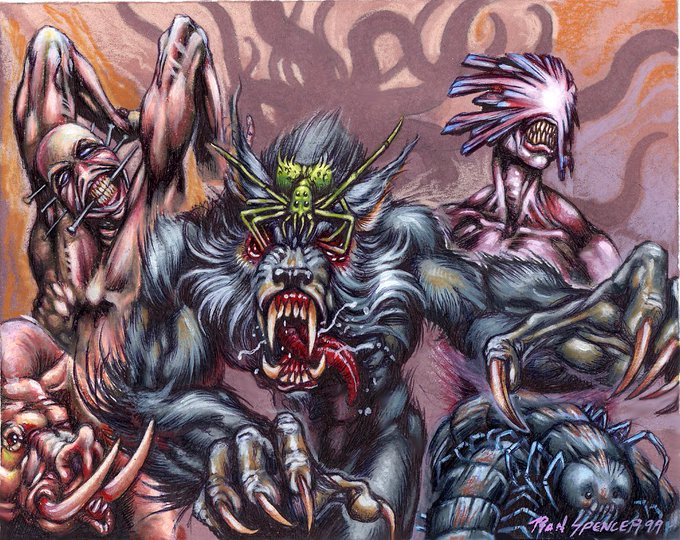 Painted by Ron Spencer in 1999, these were apparently commissioned for cards from an unpublished, cosmic-themed RAGE: ACROSS LAS VEGAS expansion titled "Rage Across Dreamlands" by FRPG.