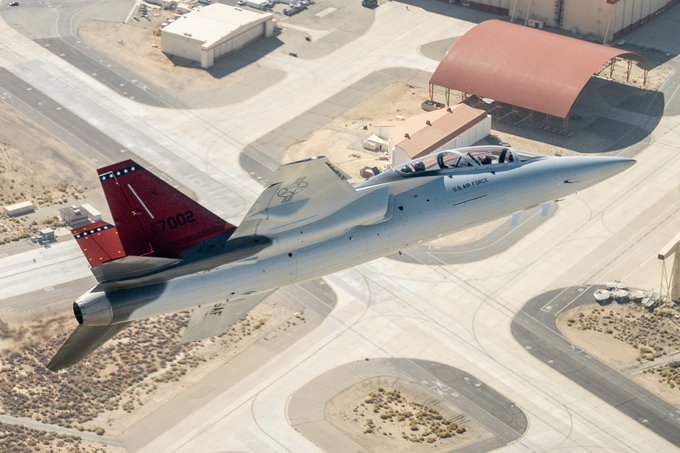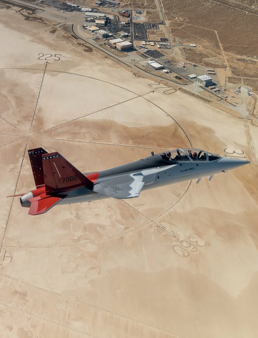 The first T-7A Red Hawk soars over the Mojave Desert, Nov. 8, prior to its arrival at Edwards Air Force Base, California.