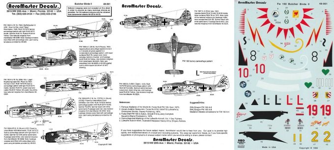 An early 1/48 Aeromaster #decalsheet for #Luftwaffe Focke-Wulf Fw 190s when they provided decals for seven options on a sheet, some unusual schemes including Grafs Jagdgruppe Ost Butcher Bird https://t.co/ZjGCQXOaa1