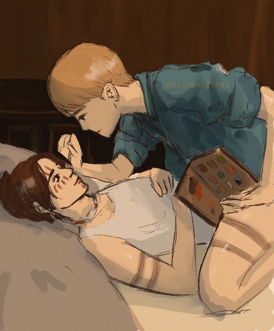 [The squad visits the orphanage and the kids put flower crown on Moblit :')]