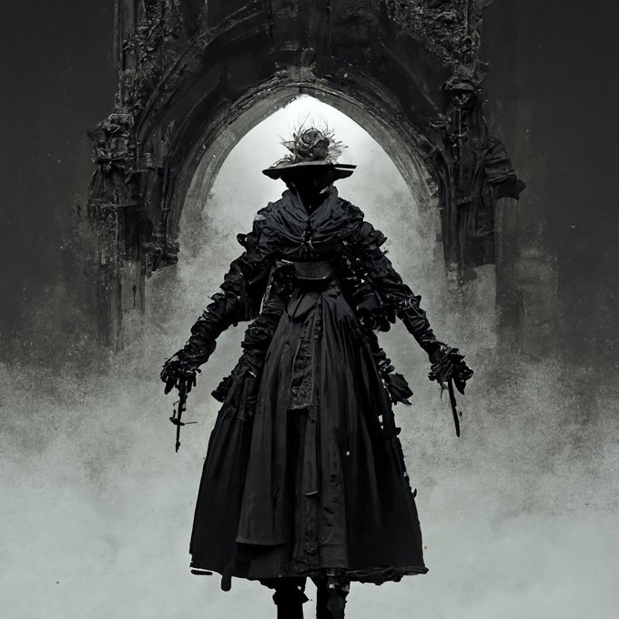 Midjourney's AI is fun - "High-resolution SCP Foundation researcher character exploring Yharnam from Bloodborne"