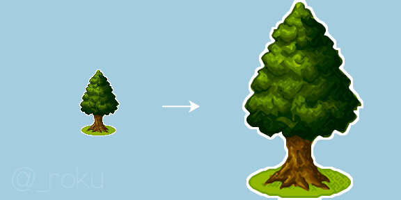 Heh, I can barely tell wich one is original pixelart and which one is smoothed version if looking from a distance