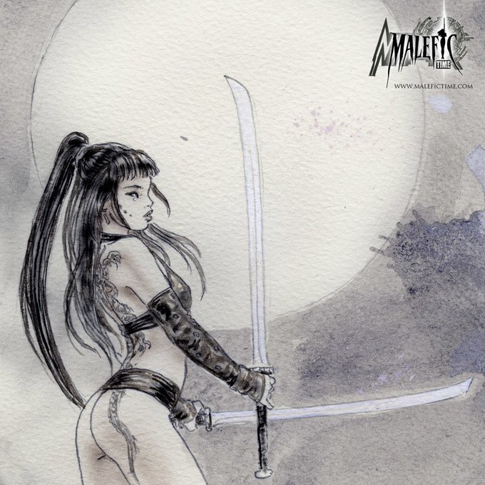 Malefic Time Apocalypse - Soum Dance 8 #LuisRoyo #RomuloRoyo #moon #katana #warrio #tattoo #drawing #warrior #fantasy #illustration