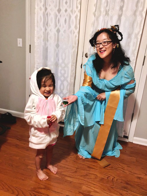 Dressed up as @SMITEGame characters - Chang’e and her little white bunny 😃