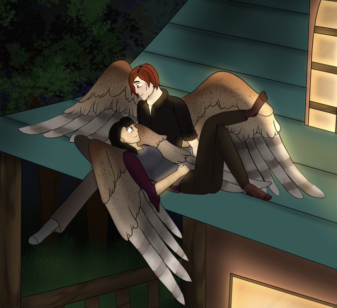 @camicattweets Here’s my boy Icaelus (Ike) Dydarion! He’s a gunslinging Fighter fallen Aasimar with Barn Owl wings also his freckles and eyes glow when he’s happy.