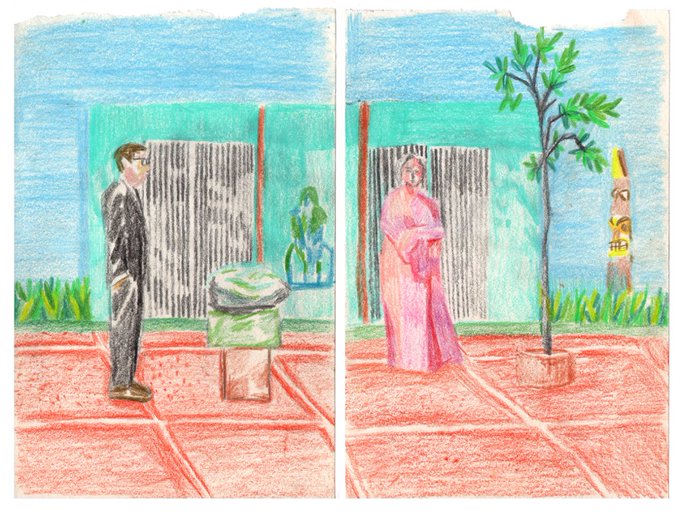 A striking 'Interior with Plant' composition from Eowyn in our new inspired project with Group 3 (yr 6), created using a digital drawing app.