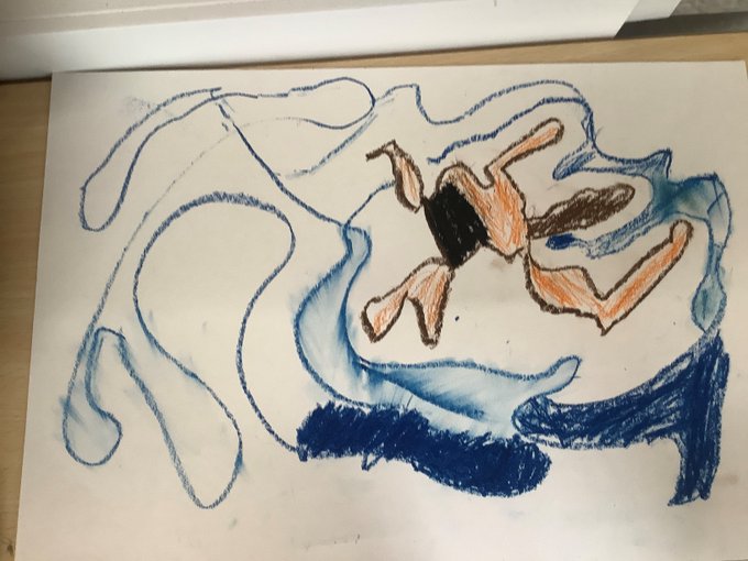 Wonderful distorted figures of swimmers underwater captured by Marlie, Brooke & Rufus in G3N (Yr6) as we explored David Hockney's swimming pool paintings.