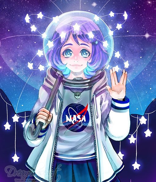 #space #galaxy #nasa #dreamchaserart #spacegirl #helmetgirl #astronaut #astronautgirl #galaxygirl #stars #betweenthestars #anime #manga #purplehair #cute #dutchcomicon #dcc #print #prints